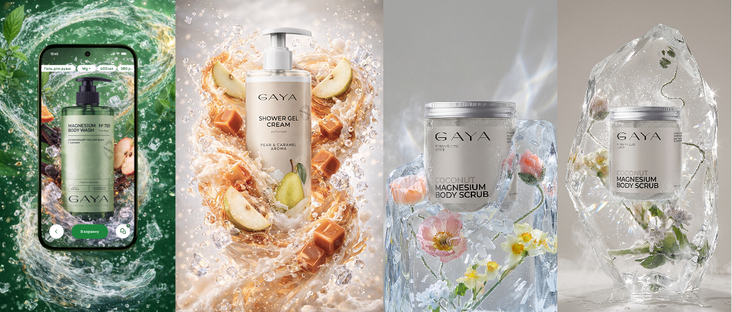 Пример креативной визуальной работы для косметического бренда GAYA